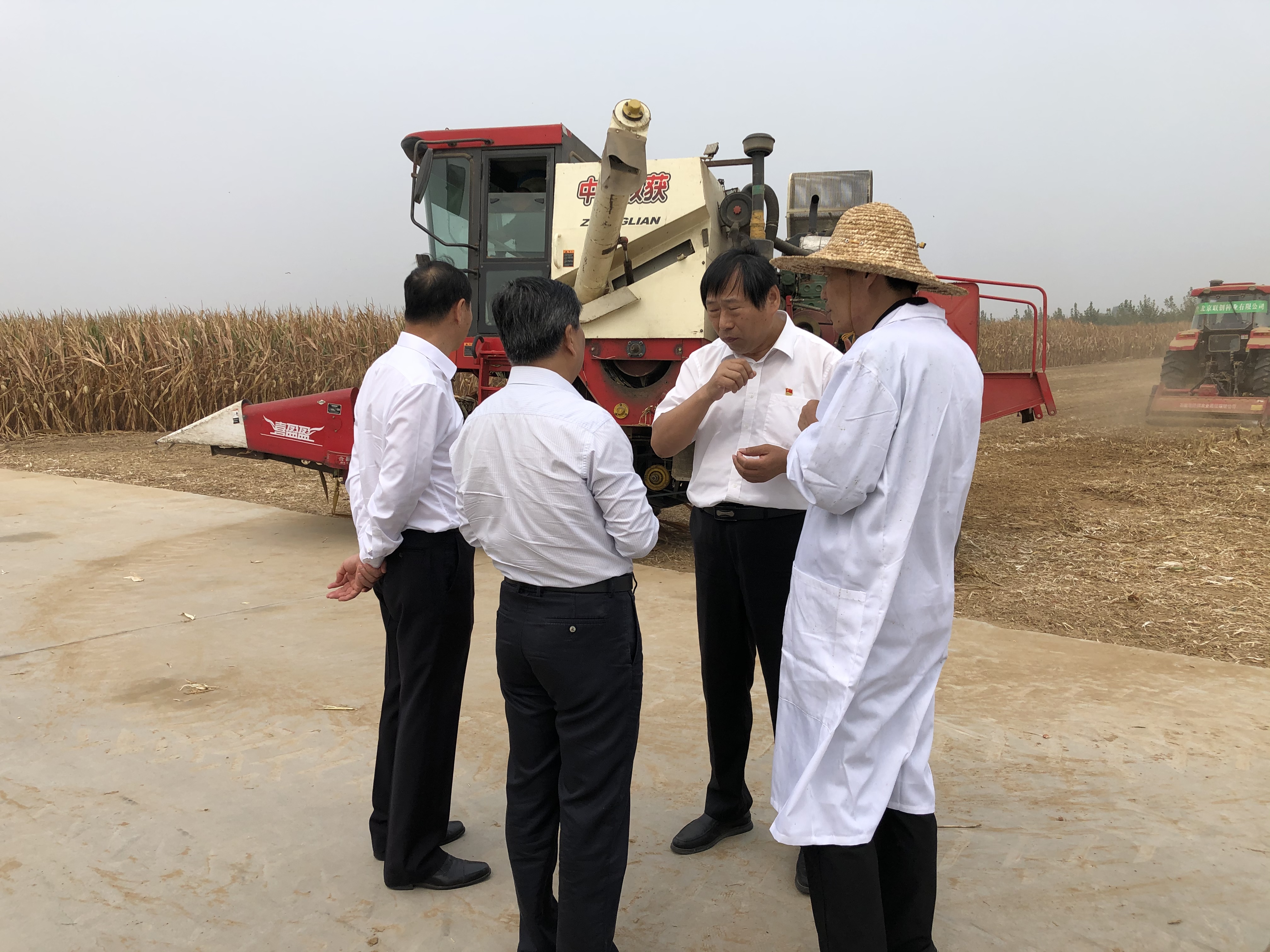 王義波董事長陪同武國定副省長一行深入田間觀看了玉米籽粒機(jī)收、秸稈還田等秋收現(xiàn)場(chǎng),并向副省長匯報(bào)了當(dāng)前“三秋”生產(chǎn)工作開展情況。期間武國定副省長及各位領(lǐng)導(dǎo)親自到試驗(yàn)地里查看了玉米長勢(shì),掰下成熟的玉米果穗和王義波進(jìn)行了現(xiàn)場(chǎng)交流,并蹲在地里撥開粉碎后的玉米秸稈查看秸稈還田情況,對(duì)聯(lián)創(chuàng)種業(yè)的各項(xiàng)工作開展情況給與了充分肯定。